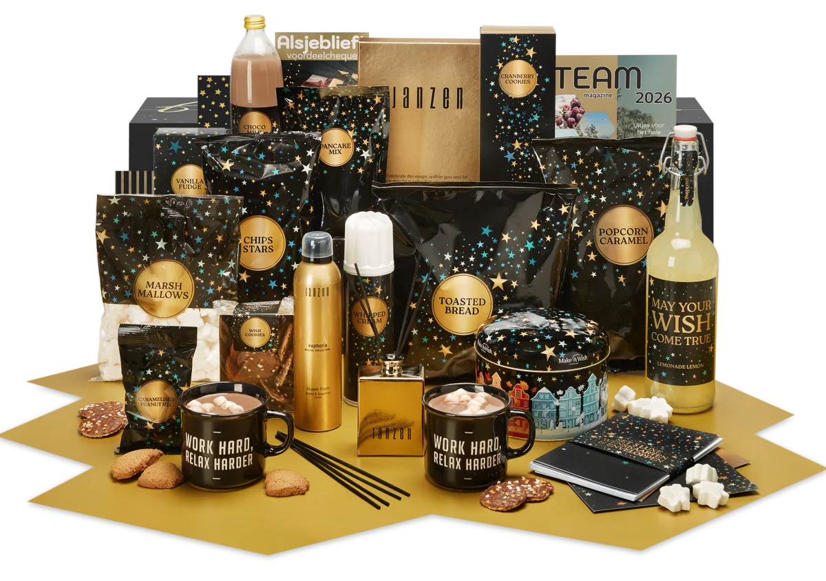 Naast de heerlijke lekkernijen bevat dit pakket een GRATIS Team Magazine, een GRATIS CenterParcs Voucher, en een GRATIS Postcode Loterij Lot voor nog meer verrassingen.