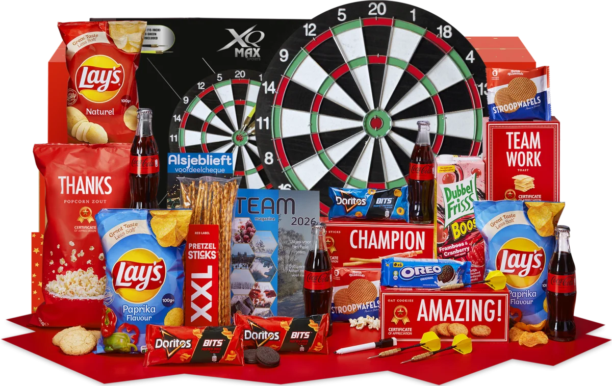 Het pakket bevat ook verfrissende drankjes zoals Coca Cola Zero en heerlijke Lay's Chips in verschillende smaken. Voor de liefhebbers van zoetigheid zijn er Dutch Diamonds Stroopwafels inbegrepen. Bovendien ontvangt u een GRATIS Team Magazine, een GRATIS CenterParcs cadeaubon en een GRATIS Kanjerlot Postcode Loterij Lot in een feestelijke kerstdoos.