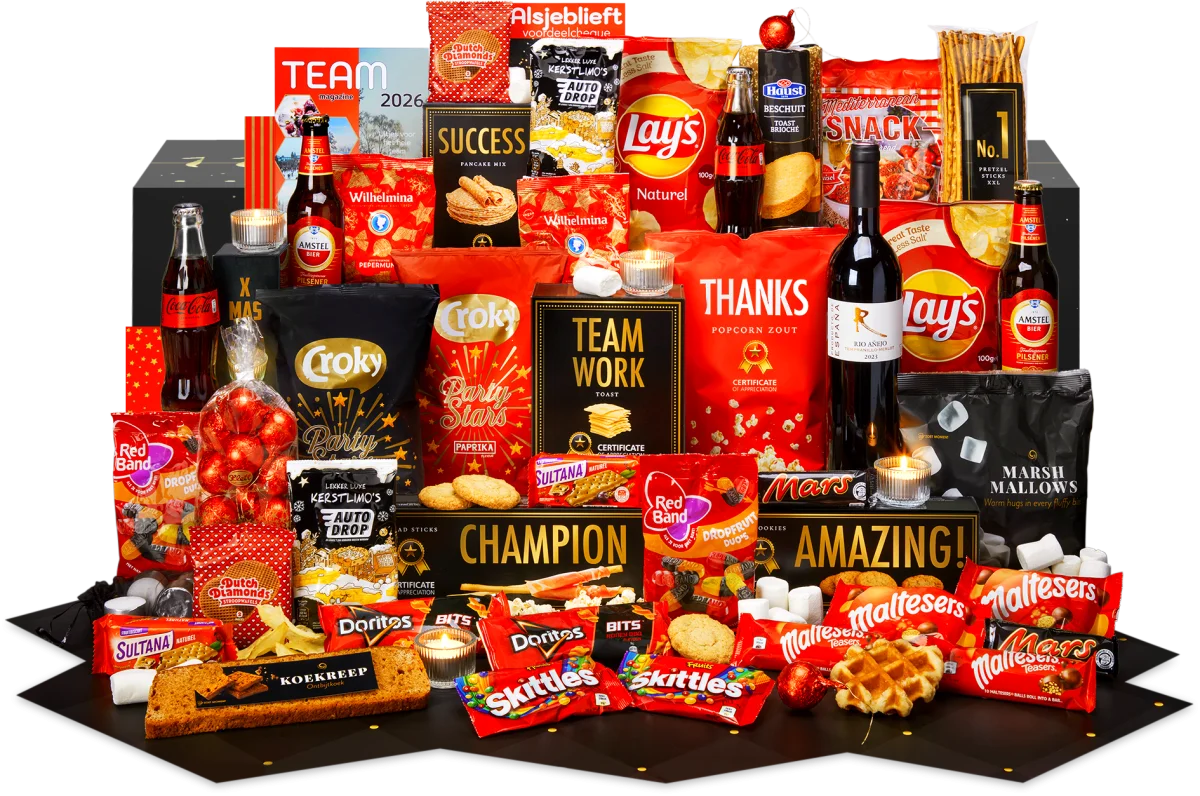 Beleef de feestdagen in stijl met ons 'Gezellig Samen' kerstpakket. Dit prachtige pakket, met een opvallend rood en zwart thema, zit boordevol verwennerijen die zorgen voor een feestelijke ervaring. Perfect voor zowel particulieren als bedrijven die hun waardering willen tonen.