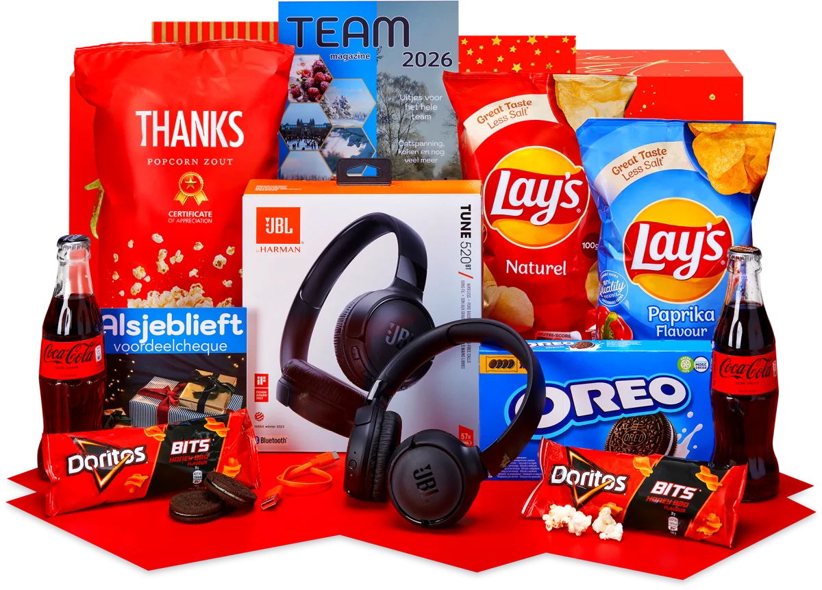 Naast de geweldige koptelefoon bevat het pakket heerlijke snacks om van te smullen tijdens de feestdagen. Denk aan krokante Popcorn en romige Oreo Filled Cookie. Voor de liefhebbers van hartige lekkernijen zijn er Doritos Bits Twisties Honey BBQ en Lay's Chips Paprika en Naturel.