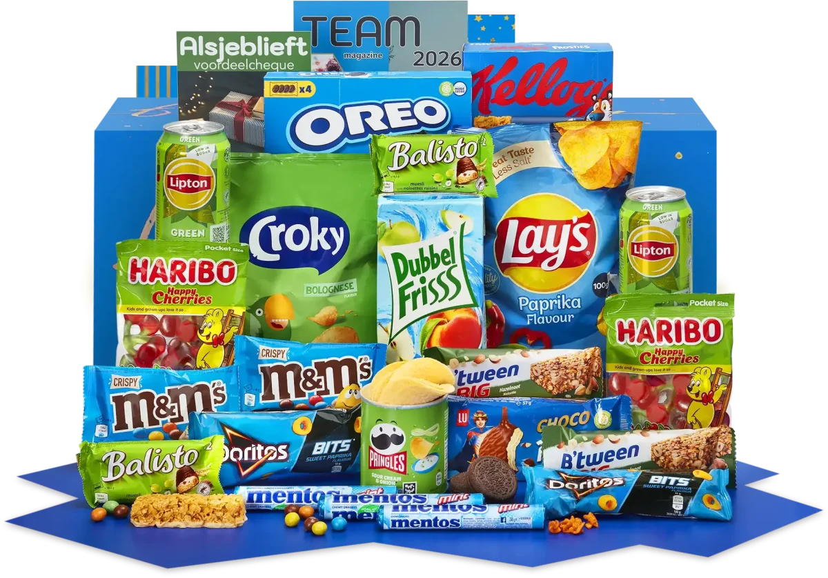 Naast al het lekkers biedt dit pakket een aantal gratis verrassingen zoals een GRATIS Team Magazine, een GRATIS CenterParcs Voucher en een GRATIS Postcode Loterij Lot. Alles verpakt in een feestelijke kerstdoos C130.