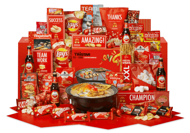 👉 Een vrolijk, kerstpakket waarmee u medewerkers trakteert op sfeer, gemak en smaak.